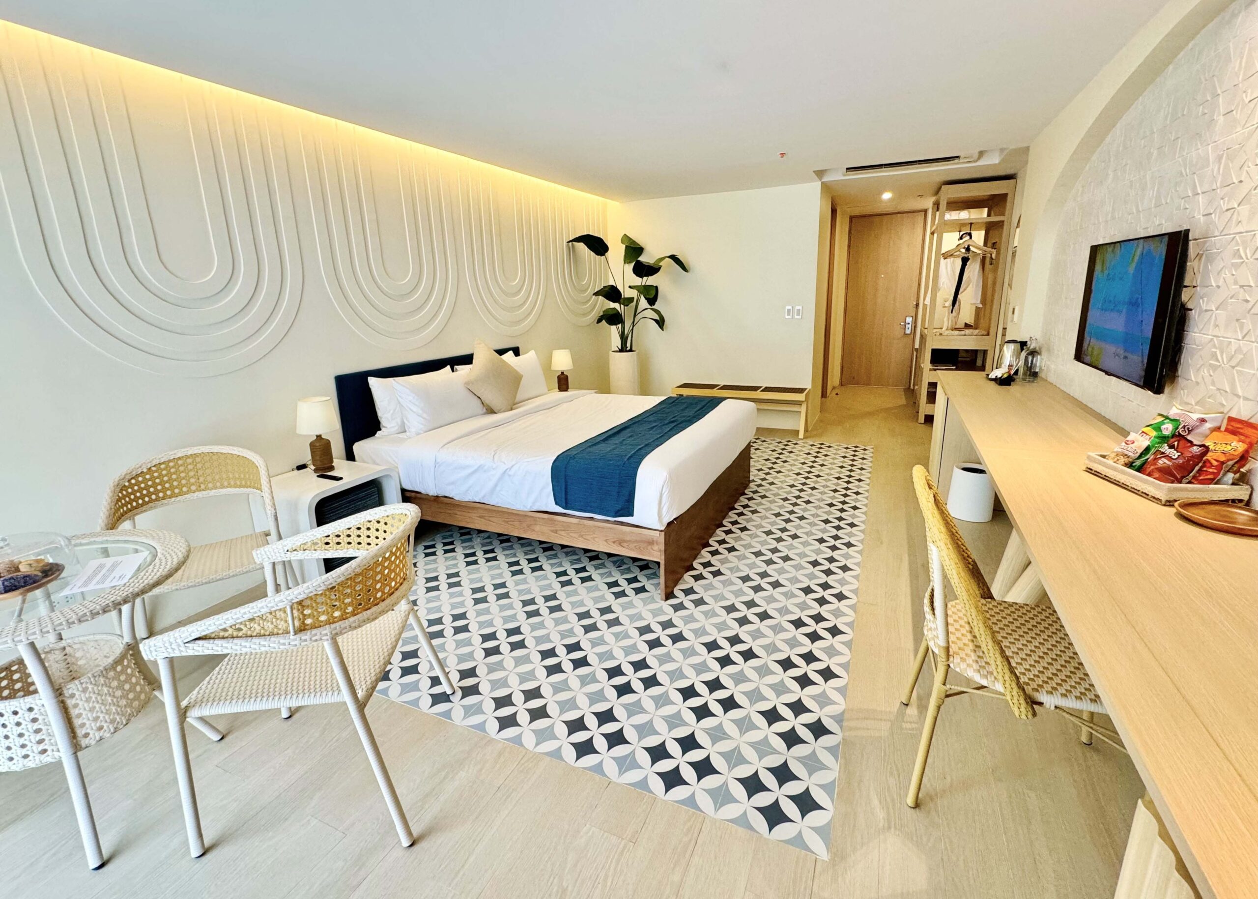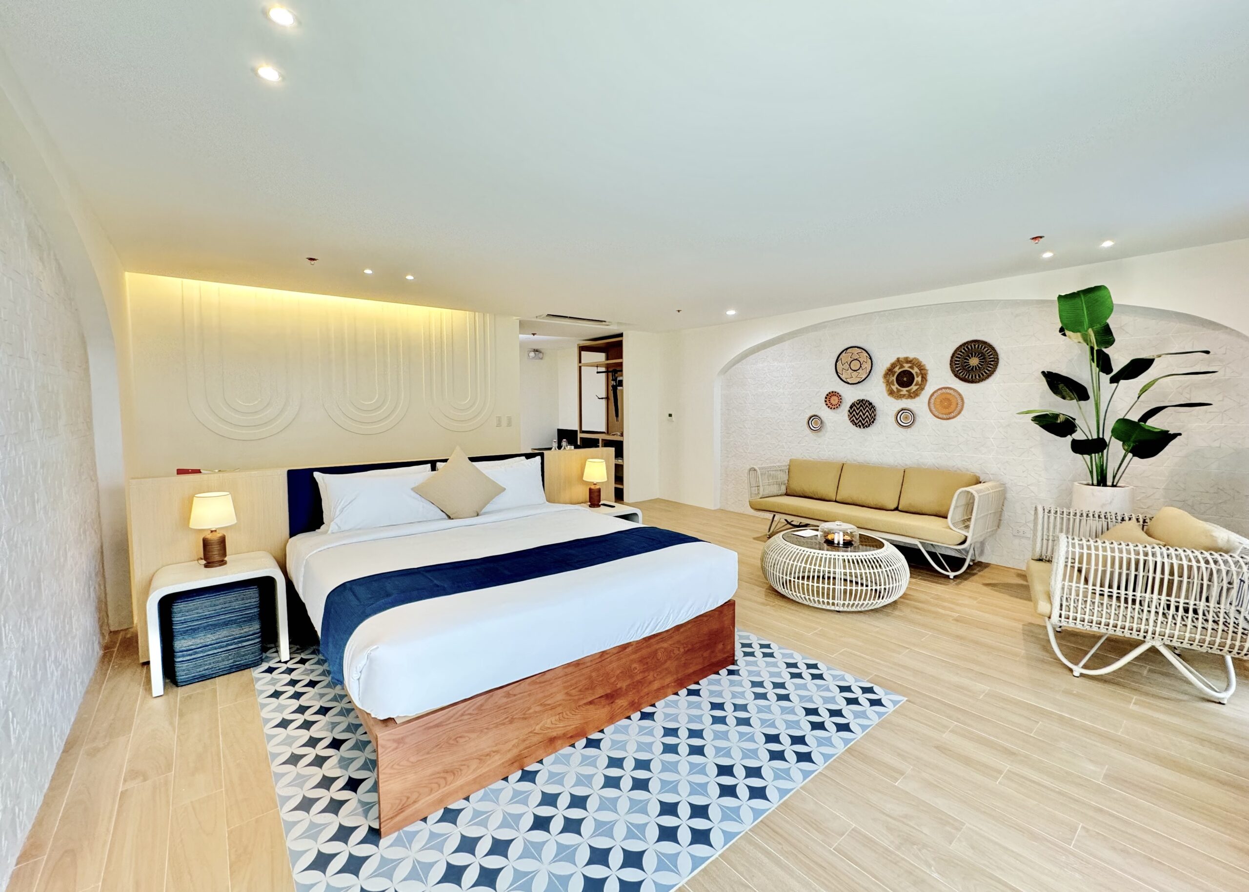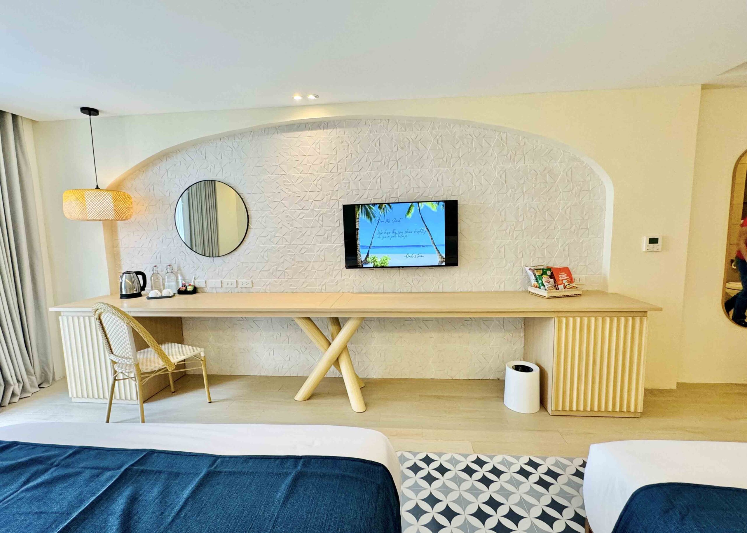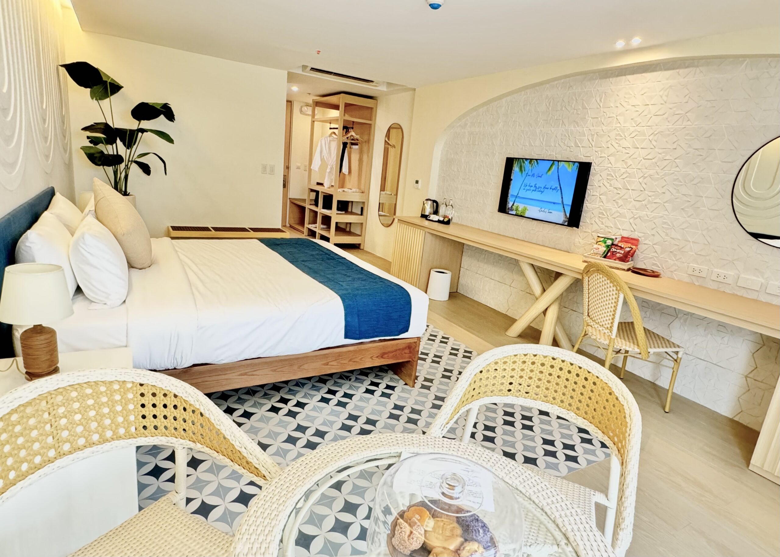 Step into our suite, where tranquility and culture blend seamlessly. Adorned in soothing tones and traditional Filipino crafts, the space exudes elegance and warmth.